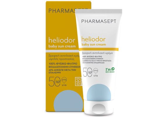 Το Pharmasept Heliodor Baby Sun Cream SPF50 δρα αμέσως μετά την επάλειψη, έχει βιοδιασπώμενη σύνθεση και ευχάριστη υφή για εύκολη εφαρμογή.