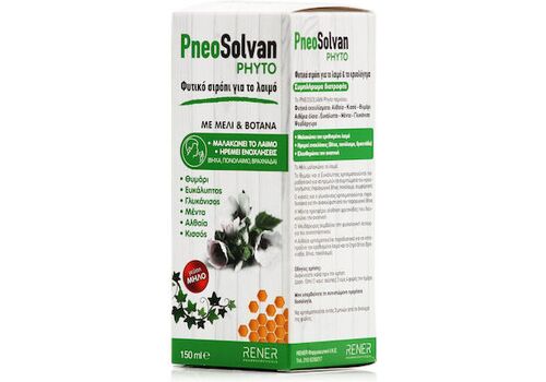 Rener PneoSolvan Phyto Adult Herbal Syrup for sore throat and cough, Honey & 6 Herbs with Apple flavor 150ml