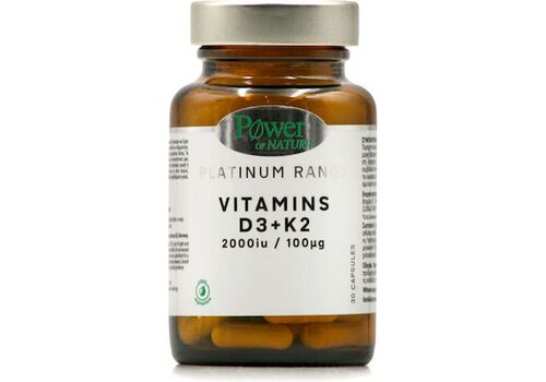 Power of Nature Platinum Range Vitamins D3+K2 2000iu/100mg Συμπλήρωμα Διατροφής Με Βιταμίνες D & K, 30 Κάψουλες
