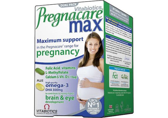 Περιλαμβάνει άλλες βασικές βιταμίνες και άλατα, συμπεριλαμβανομένων 10 μg βιταμίνης D, σύμφωνα με τις οδηγίες του Υπουργείου Υγείας του Ηνωμένου Βασιλείου κατά τη διάρκεια της εγκυμοσύνης και του θηλασμού και 500mg Ασβεστίου. Η συσκευασία περιέχει επίσης μια κάψουλα 300mg Omega-3 DHA για φυσιολογική ανάπτυξη του εγκεφάλου και των ματιών του εμβρύου **. Τα δισκία Pregnacare Max έχουν σχεδιαστεί προσεκτικά από ειδικούς για να προστατεύουν τις διατροφικές απαιτήσεις καθόλη τη διάρκεια της εγκυμοσύνης.