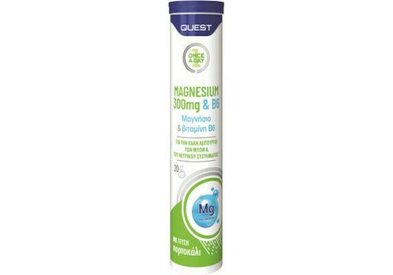 Quest Once A Day Συμπλήρωμα Διατροφής Μαγνήσιο 300mg & B6 Γεύση Πορτοκάλι, 20 αναβράζοντα δισκία