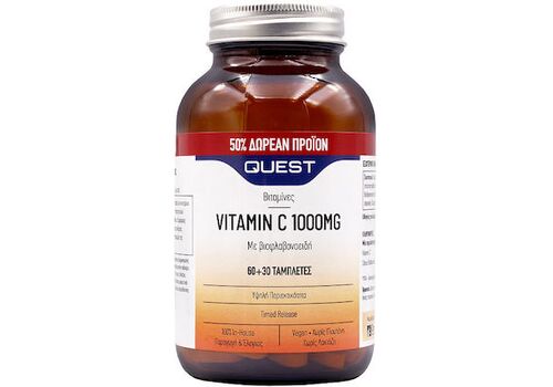 Quest Vitamin C Timed Release Βιταμίνη για Ενέργεια & Ανοσοποιητικό 1000mg 90 ταμπλέτες