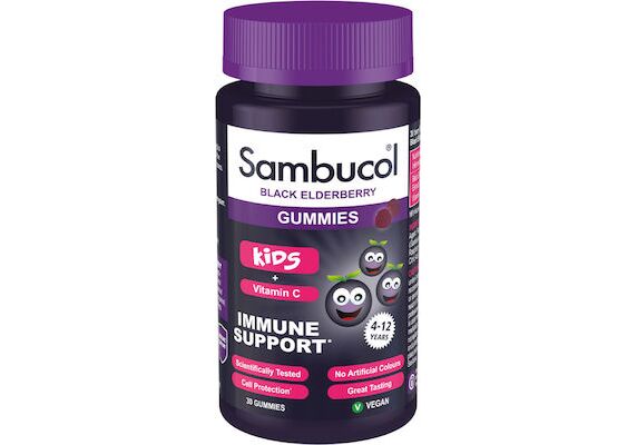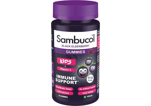 Το Sambucol® Kids Gummies (ζελεδάκια) περιέχει ένα μοναδικό συμπύκνωμα από τους καρπούς του φυτού Σαμπούκος ο Μελανός (Black Elderberry) και είναι εμπλουτισμένο με βιταμίνη C, για την υποστήριξη και τη φυσιολογική λειτουργία του ανοσοποιητικού συστήματος των παιδιών, ειδικά σε περιπτώσεις γρίπης και κοινού κρυολογήματος. Είναι ιδιαίτερα πλούσιο σε φυσικά αντιοξειδωτικά, τα οποία προσδίδουν στο Sambucol® ισχυρή αντιοξειδωτική δράση. Τα φλαβονοειδή και οι ανθοκυανίνες που περιέχονται είναι μεταξύ των πλέον ισχυρών φυσικών αντιοξειδωτικών που υπάρχουν. Η μοναδική μέθοδος παραγωγής του Sambucol® διατηρεί και μεγιστοποιεί τα φυσικά οφέλη των Black Elderberries. Έχει μελετηθεί σε εργαστηριακές και κλινικές δοκιμές και τα οφέλη έχουν δημοσιευθεί σε διεθνείς μελέτες. To Sambucol® έχει χρησιμοποιηθεί από εκατομμύρια ανθρώπους σε όλο τον κόσμο. Η νέα μορφή Sambucol Kids Gummies (ζελεδάκια) είναι κατάλληλη για παιδιά ηλικίας από 4 έως 12 ετών . Μπορεί να χρησιμοποιηθεί κατά τη διάρκεια όλου του χρόνου για την υποστήριξη του ανοσοποιητικού συστήματος των παιδιών. Περιέχει 30 ζελεδάκια με ευχάριστη γεύση σμέρουρο και είναι κατάλληλο για Vegan.