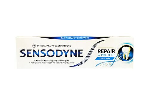 H Sensodyne Repair & Protect είναι μια οδοντόκρεμα καθημερινής χρήσης που συνδυάζει την προηγμένη τεχνολογία Novamin με το φθόριο. Η Sensodyne Repair & Protect εντοπίζει τα ευαίσθητα σημεία των δοντιών σας. Όταν έρχεται σε επαφή με το σάλιο, το συστατικό Novamin ενεργοποιείται και προσκολλάται ισχυρά στην εκτεθειμένη οδοντίνη, σχηματίζοντας ένα προστατευτικό κάλυμμα που βοηθά στην αναδόμηση* αυτών των ευαίσθητων περιοχών. Με βούρτσισμα δύο φορές την ημέρα, η Sensodyne Repair & Protect συνεχίζει να αναδομεί, να ενδυναμώνει και να προστατεύει τα δόντια σας, ενώ παράλληλα προσφέρει αποτελεσματική ανακούφιση από την ευαισθησία που διαρκεί.