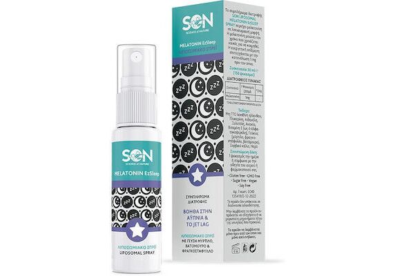 Το συμπλήρωμα διατροφής SON Melatonin Ezsleep Liposomal Spray περιέχει Μελατονίνη, σε λιποσωμιακή μορφή.Η μελατονίνη μειώνει τον χρόνο που χρειάζεται κανείς για να κοιμηθεί.