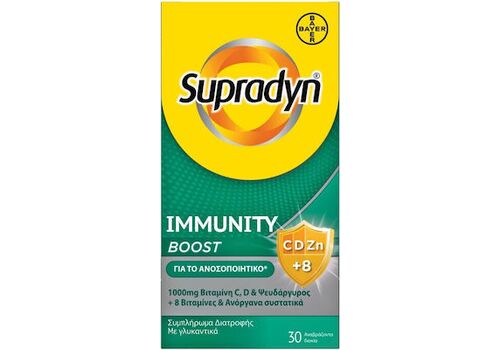 Πώς πρέπει να λαμβάνετε το Supradyn® Immunity Boost; Supradyn® Immunity Boost για ενήλικες και παιδιά άνω των 12 ετών: 1 αναβράζον δισκίο την ημέρα, διαλυμένο σε 1 ποτήρι νερό (200ml).