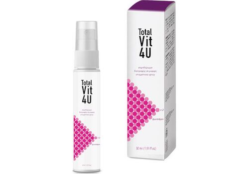 To Total Vit 4U είναι συμπλήρωμα διατροφής σε μορφή στοματικού spray που περιέχει βιταμίνες.