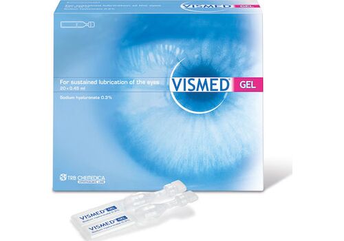 Vismed gel eye drops are indicated for the treatment of dry and burning eyes. The hypotonic and patented composition with a higher viscosity quickly neutralizes the hypertonicity of the tears and provides increased protection and longer relief even in more severe cases of dry eyes or very intense symptoms.