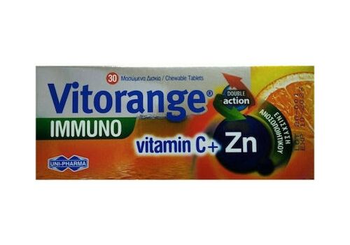 Uni-Pharma Vitorange Immuno Vitamin C + Zn Βιταμίνη για Ενέργεια & Ανοσοποιητικό Πορτοκάλι 30 μασώμενες ταμπλέτες