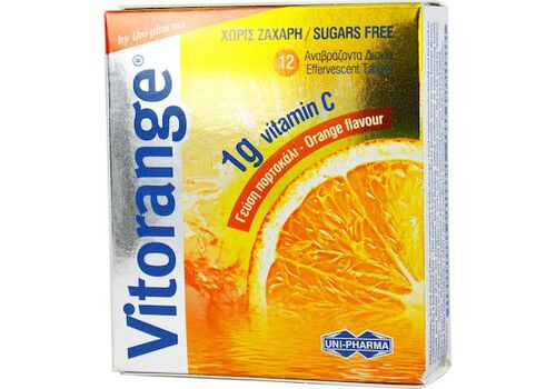 Uni-Pharma Vitorange 1g Vitamin C Συμπλήρωμα Διατροφής με Βιταμίνη C για Αυξηση Ενέργειας & Ενίσχυση Ανοσοποιητικού - Χωρίς Ζάχαρη, 12eff.tabs