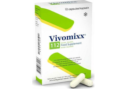 Το συμπυκνωμένο συμπλήρωμα διατροφής με προβιοτικά Vivomixx 112 Billion 10 κάψουλες που περιέχει 112 δισεκατομμύρια από οκτώ διαφορετικά στελέχη σημαντικών ζωντανών βακτηρίων που είναι απαραίτητα για την εξισορρόπηση του πεπτικού συστήματος.