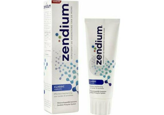 Η Zendium Classic είναι μια ήπια και απαλή οδοντόκρεμα για όλη την οικογένεια. Περιέχει φθόριο, πρωτόγαλα και ένζυμα. Τα ένζυμα και το πρωτόγαλα ενισχύουν και ενεργοποιούν τις φυσικές άμυνες του στόματος. Το φθόριο ενισχύει και προστατεύει από την τερηδόνα.