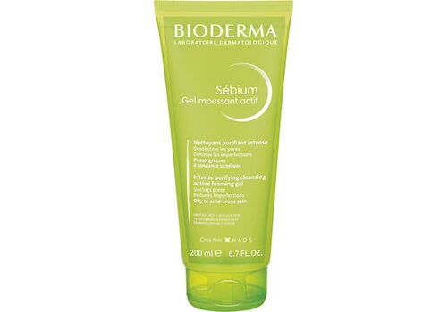 Bioderma Sebium Gel Moussant Actif Intense Purifying Cleansing Active Foaming Gel Αφρίζων Τζελ Καθαρισμού Ιδανικό για Μεικτές & Λιπαρές Επιδερμίδες με Τάση Ακμής, 200ml