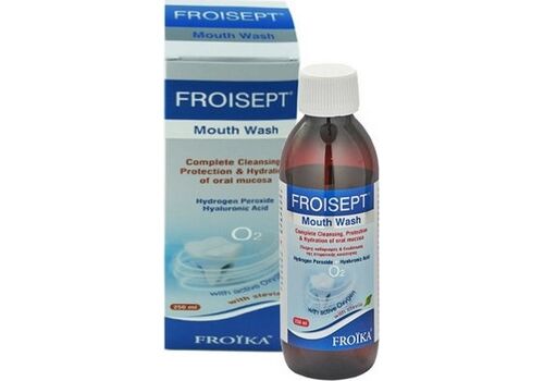 Το FROISEPT Mouth Wash έρχεται σε επαφή µε τους ιστούς και απελευθερώνει ενεργό οξυγόνο που βοηθά στην αποµάκρυνση µε µηχανικό τρόπο υπολειµµάτων τροφής και πλεονάζοντος ιστού από τα ούλα, τα δόντια, τις µεσοδόντιες περιοχές, τα εµφυτεύµατα, τα ορθοδοντικά στηρίγµατα και τις τεχνητές οδοντοστοιχίες.