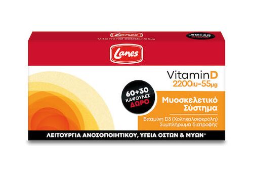 Lanes Vitamin D 2200iu 55mg Συμπλήρωμα Διατροφής με Βιταμίνη D για Ενίσχυση του Ανοσοποιητικού, 90caps (60+30 Δώρο)