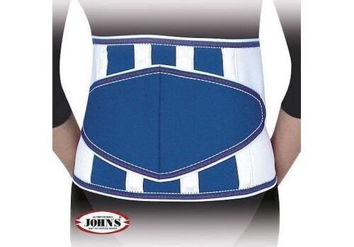 Ζώνη στήριξης μέσης σε μπλε χρώμα από την εταιρεία Johns, η οποία πετυχαίνει ήπια και αποτελεσματική συμπίεση, στοχεύοντας στη μείωση των φορτίων που ασκούνται στη μέση και τη σπονδυλική στήλη, ανακουφίζοντας την περιοχή και δίνοντας μια αίσθηση σταθερότητας. Επιπλέον, διαθέτει ελαστική κατασκευή από υλικό neoprene που είναι ένας ελαφρύς και αρκετά ανθεκτικός στη φθορά τύπος συνθετικού καουτσούκ, ο ποίος λόγω της δομής του απορροφά την υγρασία και διατηρεί τη θερμότητα.