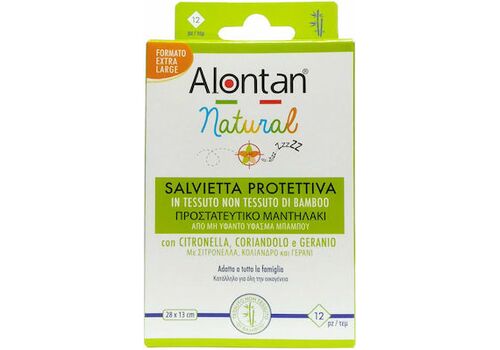 Alontan Εντομοαπωθητικά Προστατευτικά Μαντηλάκια με Σιτρονέλλα, Κόλιανδρο & Γεράνι 28x13cm Κατάλληλα για Παιδιά 12τμχ