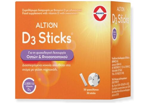 Altion D3 2000iu Διασπειρόμενα Κοκκία Απευθείας στο Στόμα με Γεύση Πορτοκάλι 30 Sticks