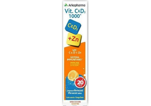 Arkopharma Vitamin C & D3 Ψευδάργυρο Συμπλήρωμα Διατροφής για το Ανοσοποιητικό Σύστημα με Γεύση Πορτοκάλι 20 Αναβράζοντα Δισκία