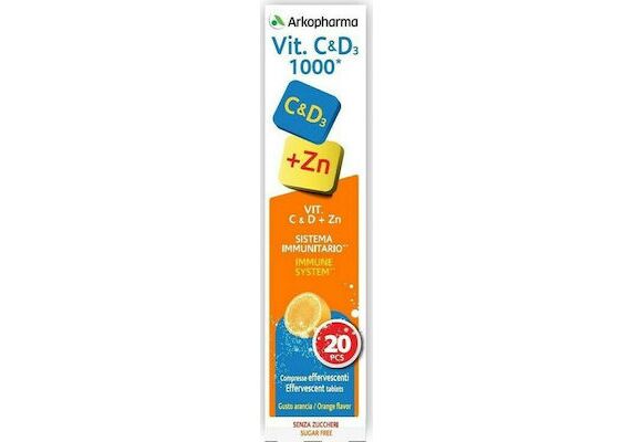 Arkopharma Vit. C & D + Zn Orange Flavour Βιταμίνες και Ψευδάργυρος για το Ανοσοποιητικό, 20 αναβράζοντα δισκία
