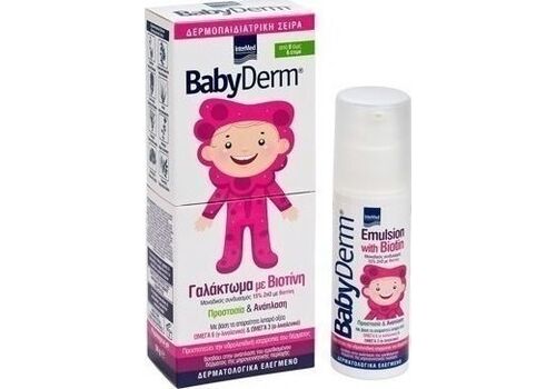 Το Babyderm emulsion with biotin είναι ένα υπερ- ενισχυμένο γαλάκτωμα ανάπλασης και ανακούφισης του ερεθισμένου δέρματος. Χάρη στην υψηλή περιεκτικότητα σε οξείδιο του ψευδαργύρου αλλά και την παρουσία της βιοτίνης το γαλάκτωμα αυτό είναι ιδανικό σε περιπτώσεις παρατρίμματος αλλά και ερεθισμών γύρω από το στόμα καθώς και μεταξύ δερματικών πτυχώσεων, καταστάσεις που απαιτούν την άμεση αποκατάσταση του δερματικού φραγμού.
