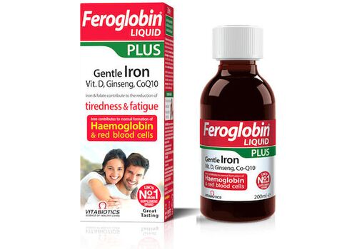 Για τον σχηματισμό αιμοσφαιρίνης για τα ερυθρά αιμοσφαίρια απαιτείται επαρκής παροχή σιδήρου και άλλων συμπαραγόντων στη διατροφή. Η αιμοσφαιρίνη μεταφέρει οξυγόνο στον εγκέφαλο, στην καρδιά, στους μύες και στους ιστούς σε ολόκληρο το σώμα.Το Feroglobin Liquid Plus περιέχει σίδηρο, που συμβάλλει στον φυσιολογικό σχηματισμό ερυθρών αιμοσφαιρίων και αιμοσφαιρίνης, καθώς και στη φυσιολογική μεταφορά οξυγόνου στο σώμα.Αυτός ο ειδικός συνδυασμός περιέχει επίσης βιταμίνη C, η οποία αυξάνει την απορρόφηση του σιδήρου, βιταμίνες B6 και B12, οι οποίες συμβάλλουν στη φυσιολογική απελευθέρωση ενέργειας, μαζί με σίδηρο και φολικό οξύ, που συμβάλλουν στη μείωση της κούρασης και της κόπωσης.