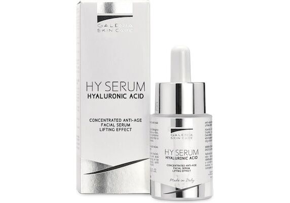 Ο συμπυκνωμένος αντιγηραντικός ορός προσώπου HY Serum Anti-Age Facial Serum της Galenia Skin Care περιέχει αυξημένες συγκεντρώσεις υαλουρονικού οξέος και δραστικών ουσιών με γνωστή αντιγηραντική δράση: υαλουρονικό οξύ, πολυσακχαρίτης, υδρολυμένη πρωτεΐνη, τριπεπτίδια και αντιοξειδωτικά.