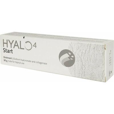 Η HYAL04 Start είναιβιοδραστική αλοιφήπου περιέχει χαμηλού μοριακού βάρους (200 kD) Υαλουρονικό Οξύ και Κολλαγενάση, ιδανική για πληγές με νεκρωτικό ιστό.