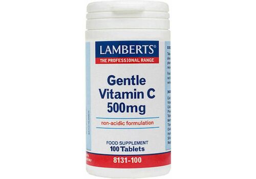 Η Gentle Vitamin C 500 mg της Lamberts παρέχει βιταμίνη C στη μορφή ασκορβικού ασβεστίου. Η μη όξινη αυτή μορφή είναι κατάλληλη για όσους παρουσιάζουν ευαισθησία στο στομάχι και ταυτόχρονα παρέχει 77 mg ασβεστίου στον οργανισμό. Η βιταμίνη C συμβάλλει στην ενίσχυση του ανοσοποιητικού και στην αντιοξειδωτική προστασία του οργανισμού.