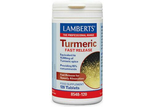 Κάθε ταμπλέτα περιέχει 200mg τιτλοδοτημένου εκχυλίσματος ρίζας Turmeric που ισοδυναμεί με 10.000mg σκόνης του μπαχαρικού. Εκτός αυτού οι ταμπλέτες Turmeric Fast release της Lamberts είναι ταχείας αποδέσμευσης διασφαλίζοντας άμεση απελευθέρωση και απορρόφηση της κουρκουμίνης ( εντός 15-30 λεπτών από την κατάποση). Όπως όλα τα σκευάσματα της Lamberts, παρασκευάζεται εντός του Ηνωμένου Βασιλείου σύμφωνα με τα αυστηρά πρότυπα της Φαρμακευτικής GMP (Pharmaceutical GMP).