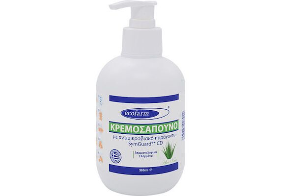 Το κρεμοσάπουνο χεριών Ecofarm έχει εξειδικευμένη σύνθεση για καθημερινή και συχνή χρήση με γλυκερίνη, πανθενόλη, αλόη, βρώμη, λεμόνι και τον αντιμικροβιακό παράγοντα (SymGuard®* CD), πλήρως βιοδιασπώμενο, δραστικό κατά των παθογόνων μικροοργανισμών.