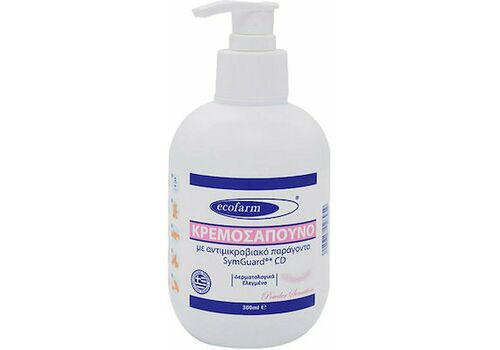 Το κρεμοσάπουνο χεριών Ecofarm έχει εξειδικευμένη σύνθεση για καθημερινή και συχνή χρήση με γλυκερίνη, πανθενόλη, αλόη, βρώμη, λεμόνι και τον αντιμικροβιακό παράγοντα SymGuard®* CD, πλήρως βιοδιασπώμενο, δραστικό κατά των παθογόνων μικροοργανισμών.