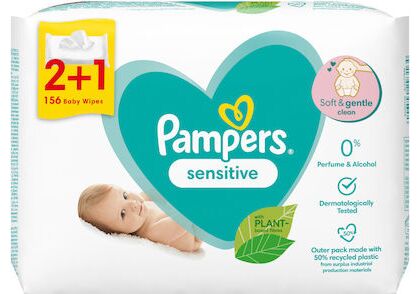 Μωρομάντηλα Pampers Sensitive - 3 συσκευασίες x 52 Μωρομάντηλα (156 Τεμάχια)
