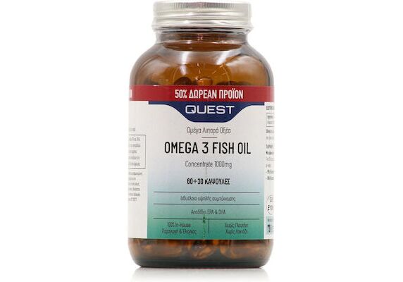 Quest Omega 3 1000mg Fish Oil - Συμπλήρωμα Διατροφής Ωμέγα 3, 60 + 30 κάψουλες