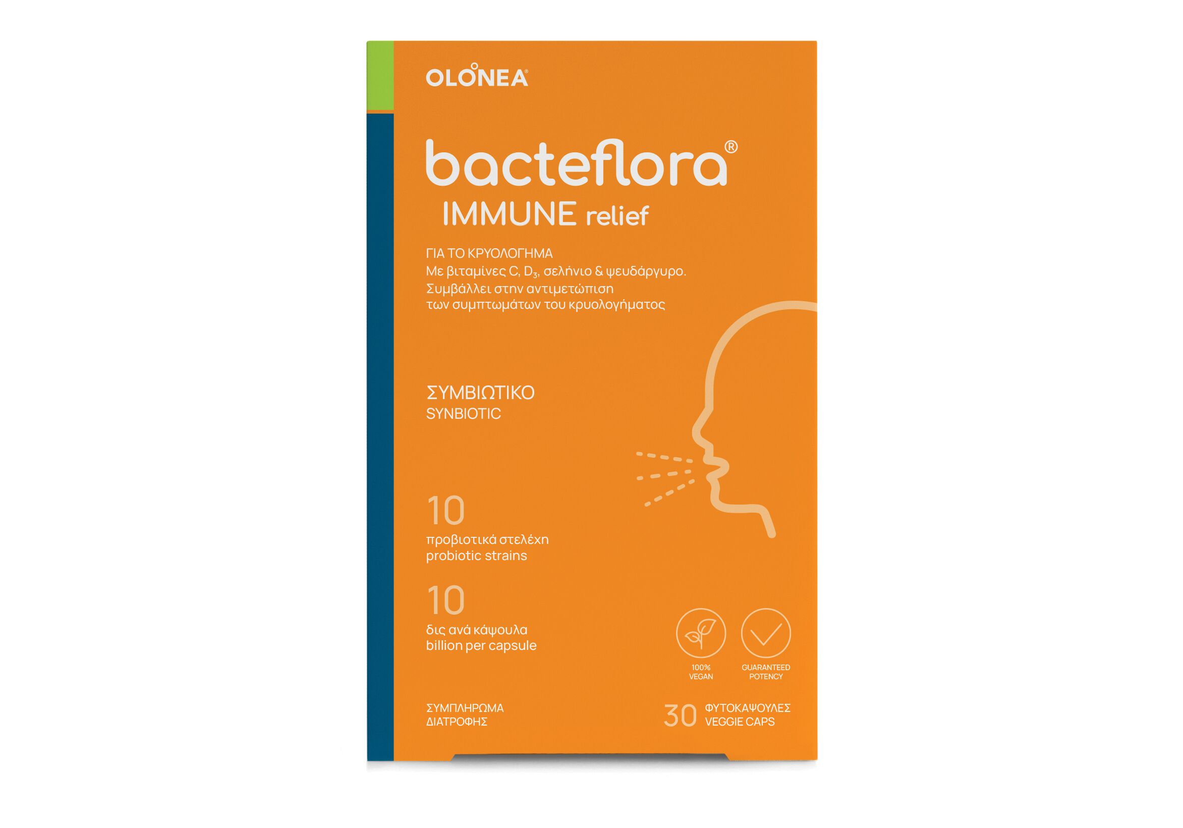 Olonea Bacteflora Immune Relief Συμπλήρωμα Διατροφής για Μείωση των Συμπτωμάτων Κρυολογήματος, 30 φυτοκάψουλες