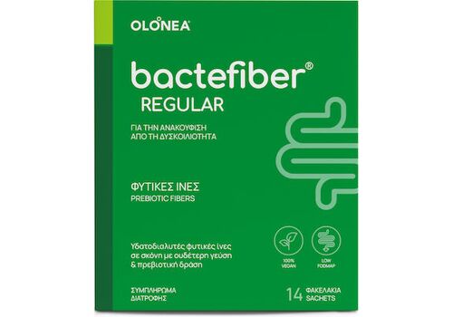 Το Olonea Bactefiber Regular είναι ένα βιολογικό συμπλήρωμα διατροφής με υδατοδιαλυτές φυτικές ίνες από το φασόλι γκουάρ και ακακία.