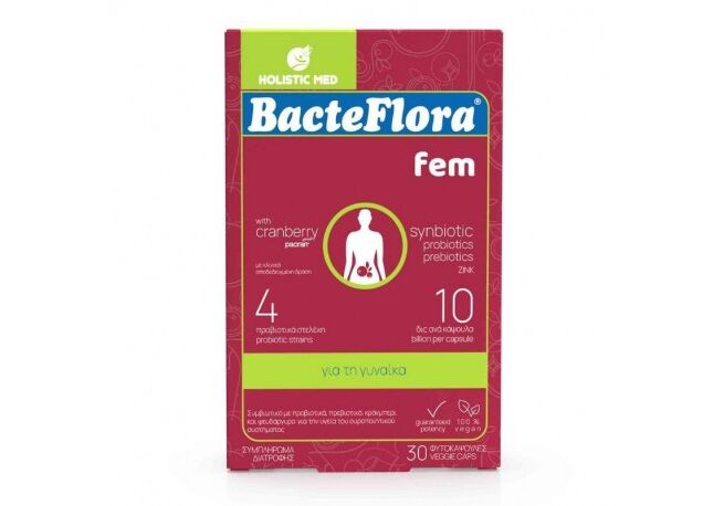 OLONEA bacteflora FEM με προβιοτικά, πρεβιοτικά, cranberry PACRAN, βιταμίνη D3 και ψευδάργυρο για προφύλαξη από ουρολοιμώξεις, 30 φυτοκάψουλες