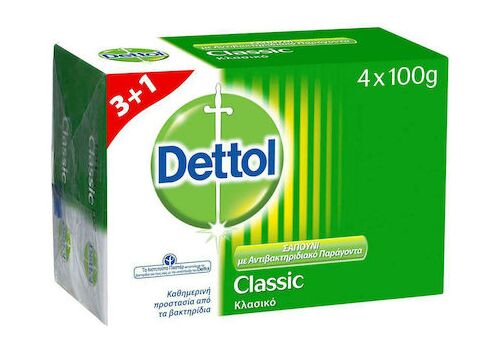 Dettol Πακέτο Προσφοράς Classic Antibacterial Hand Soap Αντιβακτηριδιακό Σαπούνι Χεριών Κλασικό 4x100gr 3+1 Δώρο