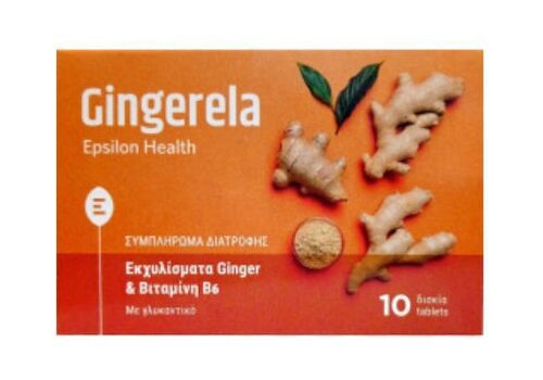 Συμπλήρωμα διατροφής Gingerela της Epsilon Health με σύνθεση από εκχυλίσματα ginger και βιταμίνη Β6.