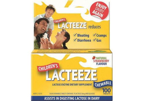Το Lacteeze Children's είναι ένα συμπλήρωμα διατροφής για παιδιά με το ένζυμο λακτάση σε μασώμενες ταμπλέτες, το οποίο βοηθά τη διάσπαση της λακτόζης και ανακουφίζει από τα συμπτώματα της δυσανεξίας στη λακτόζη.