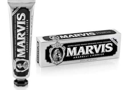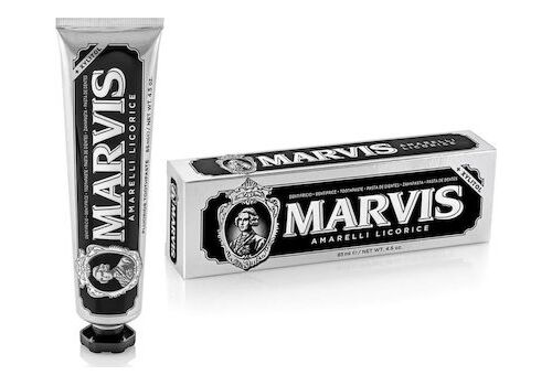 Η Marvis Amarelli Licorice είναι μια οδοντόκρεμα με πλούσια και κρεμώδης υφή που συνδυάζει την δελεαστική γεύση της γλυκόριζας μαζί με την φρεσκάδα της μέντας. Είναι σχεδιασμένη για να αφαιρεί την πλάκα, την πέτρα και για να χαρίσει ένα αστραφτερό και ολόλευκο χαμόγελο. Για την παραγωγή της συγκεκριμένης οδοντόκρεμας, η Marvis συνεργάζεται με την Ιταλική φίρμα Amarelli η οποία παράγει γλυκόριζα από το 1731 για να αποδώσει μια γλυκόπικρη και ιδιαίτερη γεύση στην Marvis Amarelli licorice που δεν πρέπει να λείψει από τα προϊόντα της οδοντιατρικής σας φροντίδας.