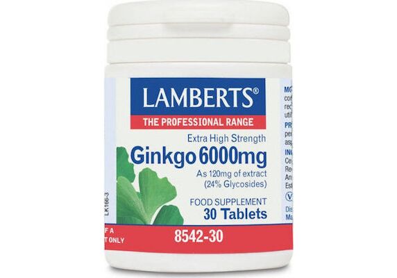 Lamberts Ginkgo Biloba Extract - Κυκλοφορία του Αίματος - Μνήμη 6000mg, 30 Tablets