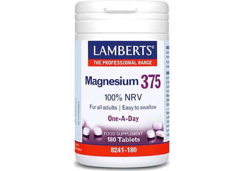 Το Magnesium 375 της Lamberts αποτελεί ένα μοναδικό σκεύασμα, καθώς περιέχει τις 4 σημαντικότερες μορφές αλάτων μαγνησίου (κιτρικό, ανθρακικό, οξείδιο και υδροξείδιο του μαγνησίου), διασφαλίζοντας ότι με 1 ταμπλέτα ημερησίως λαμβάνεται το 100% της Συνιστώμενης Ημερήσιας Πρόσληψης Μαγνησίου (375mg). Ο λόγος που χρησιμοποιήθηκαν ταυτόγχρονα οι 4 σημαντικότερες μορφές αλάτων μαγνησίου είναι για την επίτευξη υψηλής ποσότητας μαγνησίου σε μικρό μέγεθος ταμπλέτας, καθιστώντας το ως ένα ιδανικό συμπλήρωμα για άτομα τα οποία είτε δεν μπορούν να καταπιούν μεγάλες ταμπλέτες, είτε επιθυμούν με τον εύκολο τρόπο της μιας ταμπλέτας ημερησίως να προσλάβουν το 100% της Συνιστώμενης Ημερήσιας Πρόσληψης Μαγνησίου.