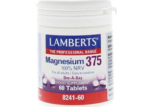 Το Magnesium 375 της Lamberts αποτελεί ένα μοναδικό σκεύασμα, καθώς περιέχει τις 4 σημαντικότερες μορφές αλάτων μαγνησίου (κιτρικό, ανθρακικό, οξείδιο και υδροξείδιο του μαγνησίου), διασφαλίζοντας ότι με 1 ταμπλέτα ημερησίως λαμβάνεται το 100% της Συνιστώμενης Ημερήσιας Πρόσληψης Μαγνησίου (375mg). Ο λόγος που χρησιμοποιήθηκαν ταυτόγχρονα οι 4 σημαντικότερες μορφές αλάτων μαγνησίου είναι για την επίτευξη υψηλής ποσότητας μαγνησίου σε μικρό μέγεθος ταμπλέτας, καθιστώντας το ως ένα ιδανικό συμπλήρωμα για άτομα τα οποία είτε δεν μπορούν να καταπιούν μεγάλες ταμπλέτες, είτε επιθυμούν με τον εύκολο τρόπο της μιας ταμπλέτας ημερησίως να προσλάβουν το 100% της Συνιστώμενης Ημερήσιας Πρόσληψης Μαγνησίου.