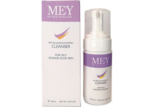 Το προϊόν MEY BALANCING FOAMING CLEANSER , σε μορφή αφρού, για δέρματα με υπερβολική λιπαρότητα και προβλήματα ακμής. Τα δραστικά του συστατικά ρυθμίζουν την έκκριση του σμήγματος, αναστέλλουν τη φλεγμονή, το σχηματισμό ελεύθερων ριζών και ελεύθερων λιπαρών οξέων, εμποδίζουν τον πολλαπλασιασμό των βακτηριδίων και προστατεύουν την επιδερμίδα. Τα α-υδροξυ οξέα (A.H.A.) και το σαλικυλικό οξύ έχουν κερατολυτική δράση και προωθούν την κυτταρική ανανέωση, με την απομάκρυνση των νεκρών κυττάρων. Δημιουργεί την αίσθηση βαθειάς καθαρότητας , λάμψης και ανανέωσης. Αποτελεί ιδανικό προϊόν καθαρισμού για δέρματα με ειδικές ανάγκες.