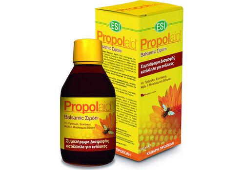 - Το Propolaid Βalsamic Σιρόπι είναι συμπλήρωμα διατροφής με Πρόπολη, Echinacea, Μέλι καστανιάς, Αλθαία, Τίλιο, Red Poppy, Verbascum, Helichrysum, αιθέρια έλαια των Mugo pine, Red thyme & Fennel.