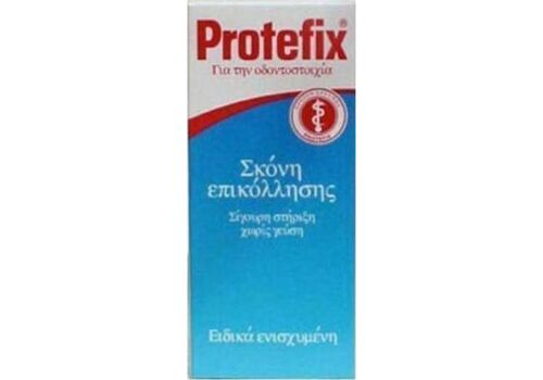 Το ιδιαιτερα ισχυρό Protefix® Adhesive Powder είναι το πιο κλασικό ανάμεσα στις κόλλες και είναι ιδανικό τόσο για προβλήματα πρόσφυσης όσο και για χαμηλό ιξώδες σάλιο. Η εφαρμογή είναι εξαιρετικά εύκολη: Το Protefix® Adhesive Powder σκορπιζεται στην υγρή οδοντοστοιχία και αναπτύσσει ασφαλή και διαρκή σταθεροποιητική δύναμη αμέσως μετά την εισαγωγή. Εάν η οδοντοστοιχία αρχίζει να χαλαρώνει νωρίτερα από το αναμενόμενο, μπορείτε να διορθώσετε το πρόβλημα, ακόμα κ αν η οδοντοστοιχία είναι σε χρήση, με απλό διασκορπισμό της σκόνης Protefix στην υγρή οδοντοστοιχία και έπειτα την τοποθετείτε σταθερά πίσω στη θέση της για κράτημα που θα διαρκέσει περισσότερο.