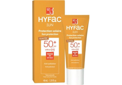 Το Hyfac Sun Protection Dry Touch SPF50+ Tinted εξασφαλίζει πολύ υψηλή προστασία κατά των ακτίνων UVB και UVA, παράλληλα προσταατεύει την επιδερμίδα από τις εξωτερικές επιθέσεις (αέρας, στρες και ρύπανση) και χαρίζει ομοιόμορφο χρωματικό τόνο.