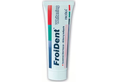 Η FROIDENT Whitening είναι μια οδοντόκρεμα κατάλληλη για την καθημερινή στοματική υγιεινή που βοηθά στην απομάκρυνση της χρώσης από τα δόντια που προέρχεται από τροφές, τον καφέ, το κάπνισμα, τη λήψη φαρμάκων κλπ. Ενώ παράλληλα αποκαθιστά τη γυαλάδα και την λαμπρότητα του σμάλτου, επαναφέροντας στα δόντια τη φυσική τους λευκότητα.