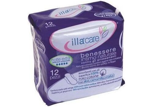 Γυναικείες σερβιέτες Illa Care Notte Extra για πολύ μεγάλη ροή.Η ιταλική εταιρεία Rietrasanta Pharma S.P.A., είναι κατασκευαστής της σειράς επιδεσμικών Master-Aid. Έχοντας εμπειρία δεκαετιών στην παράγωγη προϊόντων υγείας που έχουν άμεση σχέση με την επεξεργασία του βαμβακιού σαν πρώτη ύλη, ανέπτυξε την τελευταία Οκτώβριο του 2011 τη νέα σειρά Illa Care.Η Illa Care, είναι μια σειρά προϊόντων με σερβιέτες και σερβιετάκια από 100% υδρόφιλο βαμβάκι, εμποτισμένα με εκχυλίσματα αλόης, χαμομηλιού και μολόχας.